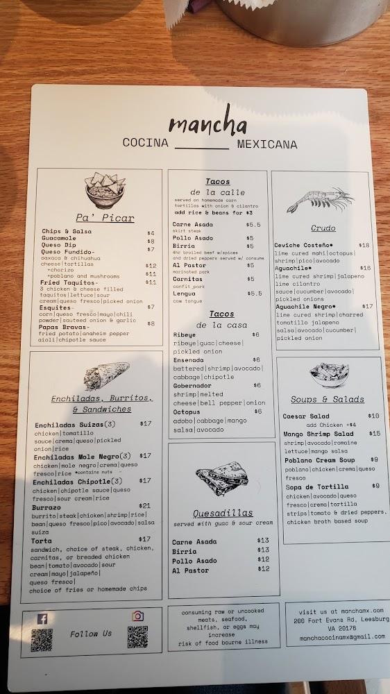 Welcome to Mancha Cocina Mexicana, where the vibrant flavors of Mexico come alive! Located at 200 Fort Evans Rd NE, Leesburg, VA, our restaurant offers a relaxed atmosphere perfect for lunch, dinner, or solo dining. Enjoy excellent cocktails and a wide selection of beers while savoring our delicious local specialties. Whether you choose to dine in, take out, or have it delivered, you’ll experience quick service and delightful dishes that are easy to share. With accessibility features and a kid-friendly menu, we cater to everyone. Join us for a memorable meal that celebrates the essence of Mexican cuisine!
